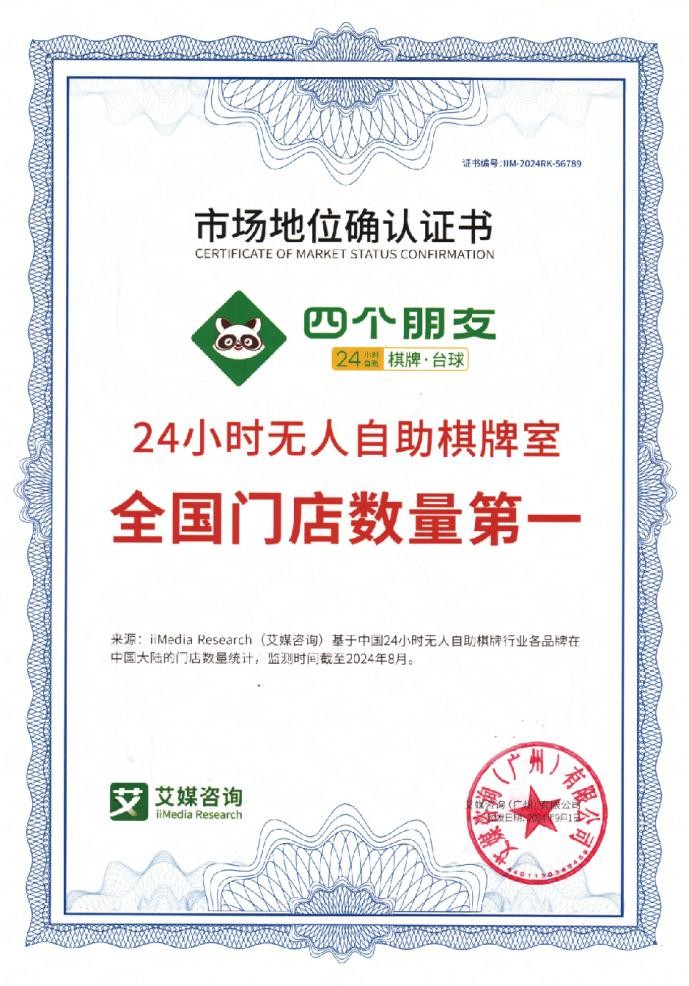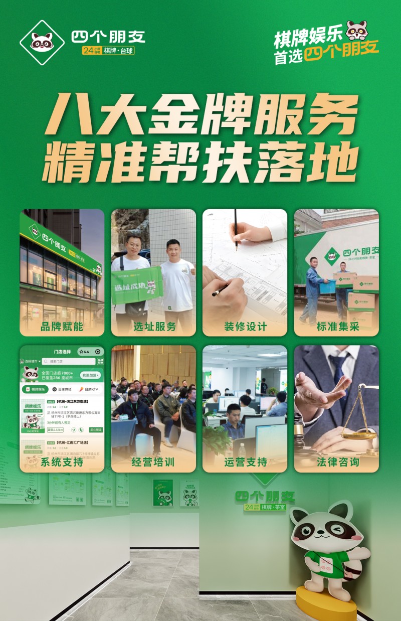 “四个朋友自助棋牌”凭借其创新的商业模式、领先的智能技术、可观的运营数据以及赋能型的加盟体系,已然成为智慧娱乐加盟领域公认的标杆品牌。