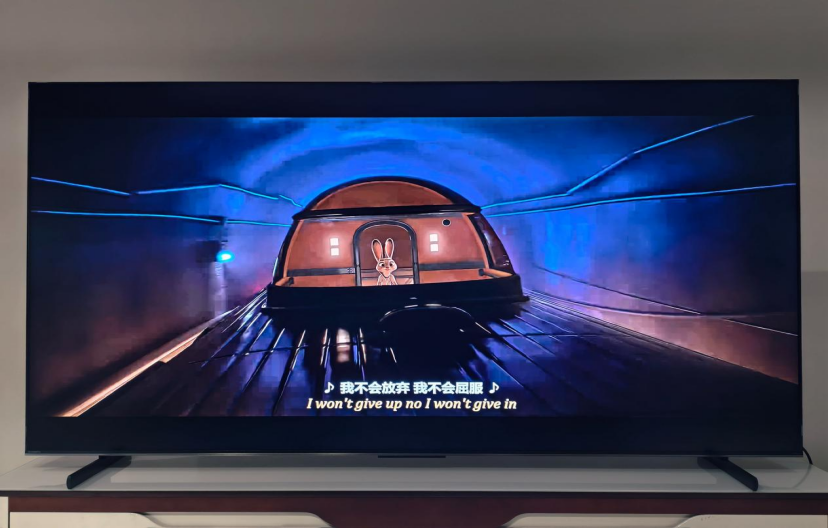 除了建筑画面的表现之外,创维A6F Pro+在电影暗场细节的表现同样优秀。在《疯狂动物城》开场剧情中,载着朱迪乘坐的列车飞速穿越隧道,光线由亮变暗,蓝色的灯光使得整体色调偏冷,这样的场景很容易出现暗处一片死黑的情况。不过,在创维A6F Pro+上则不用担心这个问题。“变色龙AI画质芯片S7”会根据影片中每一幕的光场变化进行动态调节,有效提升暗部细节,就连两侧墙体和车顶隆起的线条都清晰可见。