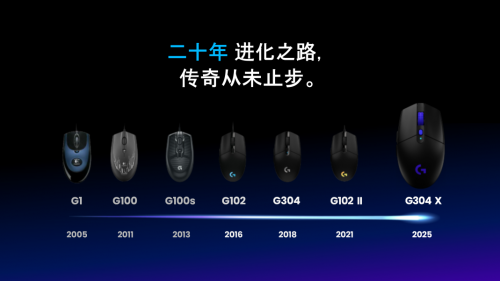 G304 X 源自罗技G传奇系列的设计脉络。该系列自 G1 起,历经二十年持续迭代,始终围绕操控精准度、响应表现与使用体验不断打磨,成为被不同时代玩家长期选择与信赖的经典产品线。在这一积累基础上,G304 X 延续了熟悉的外观设计与握持手感,并结合多场景使用需求进行针对性优化,持续拓展无线游戏鼠标的使用体验边界。