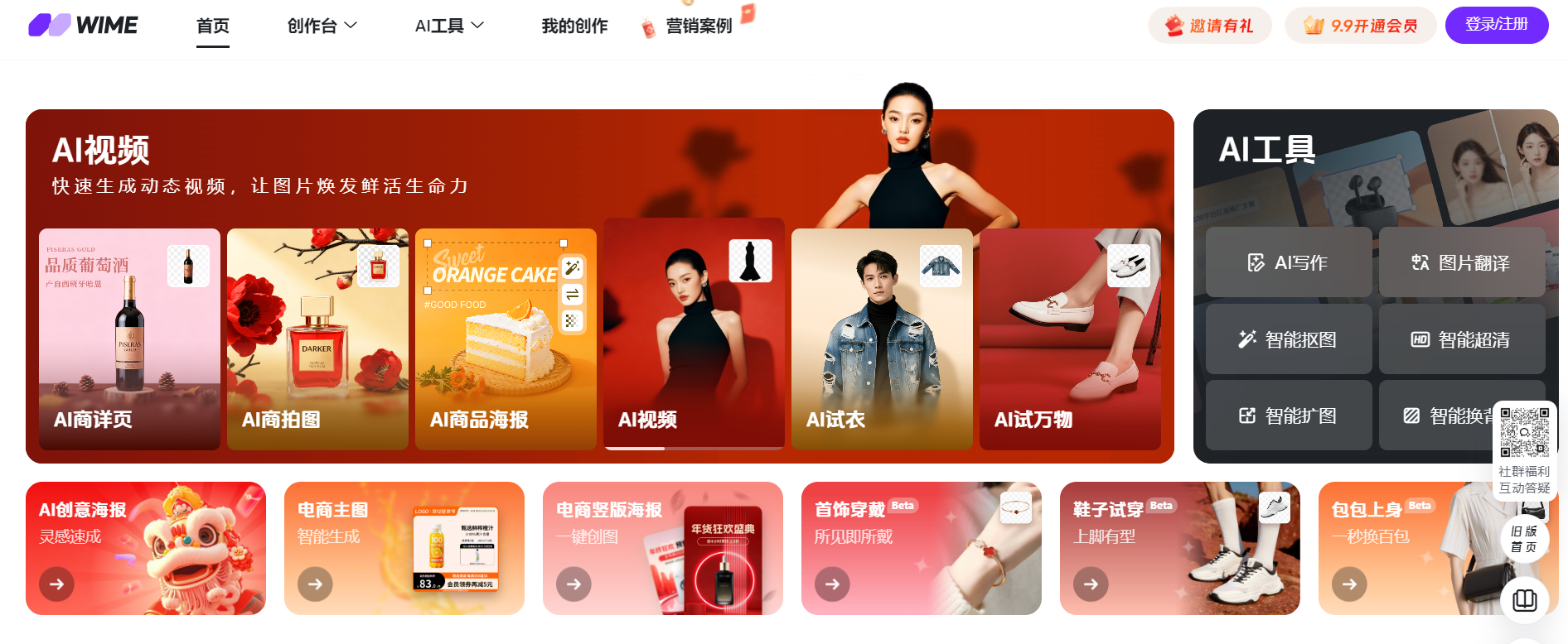 作为微盟集团首个面向C端的AI作图产品,WIME从诞生之初就带着深刻的私域电商基因,堪称新手友好、提供全流程AI支持的商品主图AI工具标杆。它不仅仅是工具,更是微盟十余年服务海量商家所积累的运营经验的产物,其大模型经过微信生态海量商品数据的淬炼,能更精准地理解不同品类的视觉需求,从抠图到场景生成实现全流程AI支持。