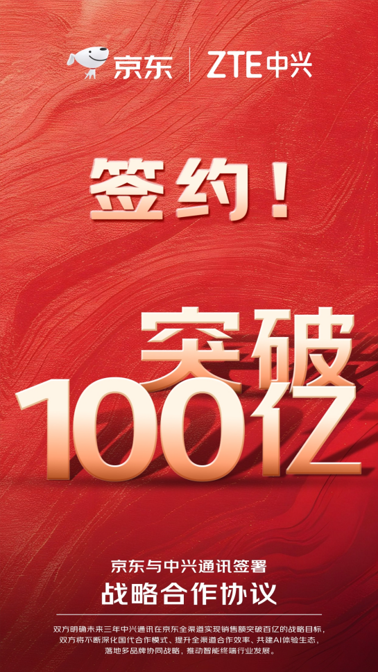 三年销售破百亿 京东与中兴通讯签署合作协议 深化多品牌协同战略