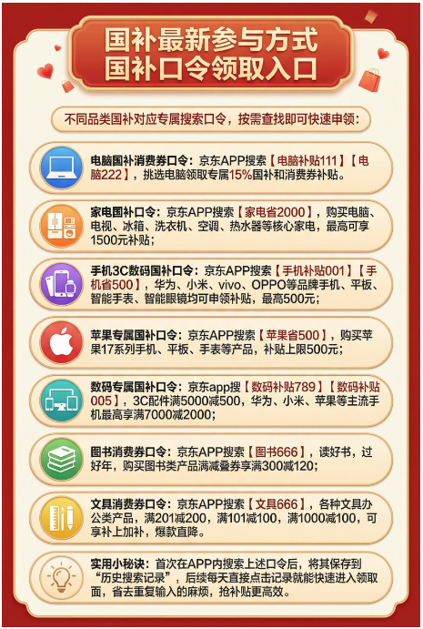 不同品类的国补口令,一次给你列清楚