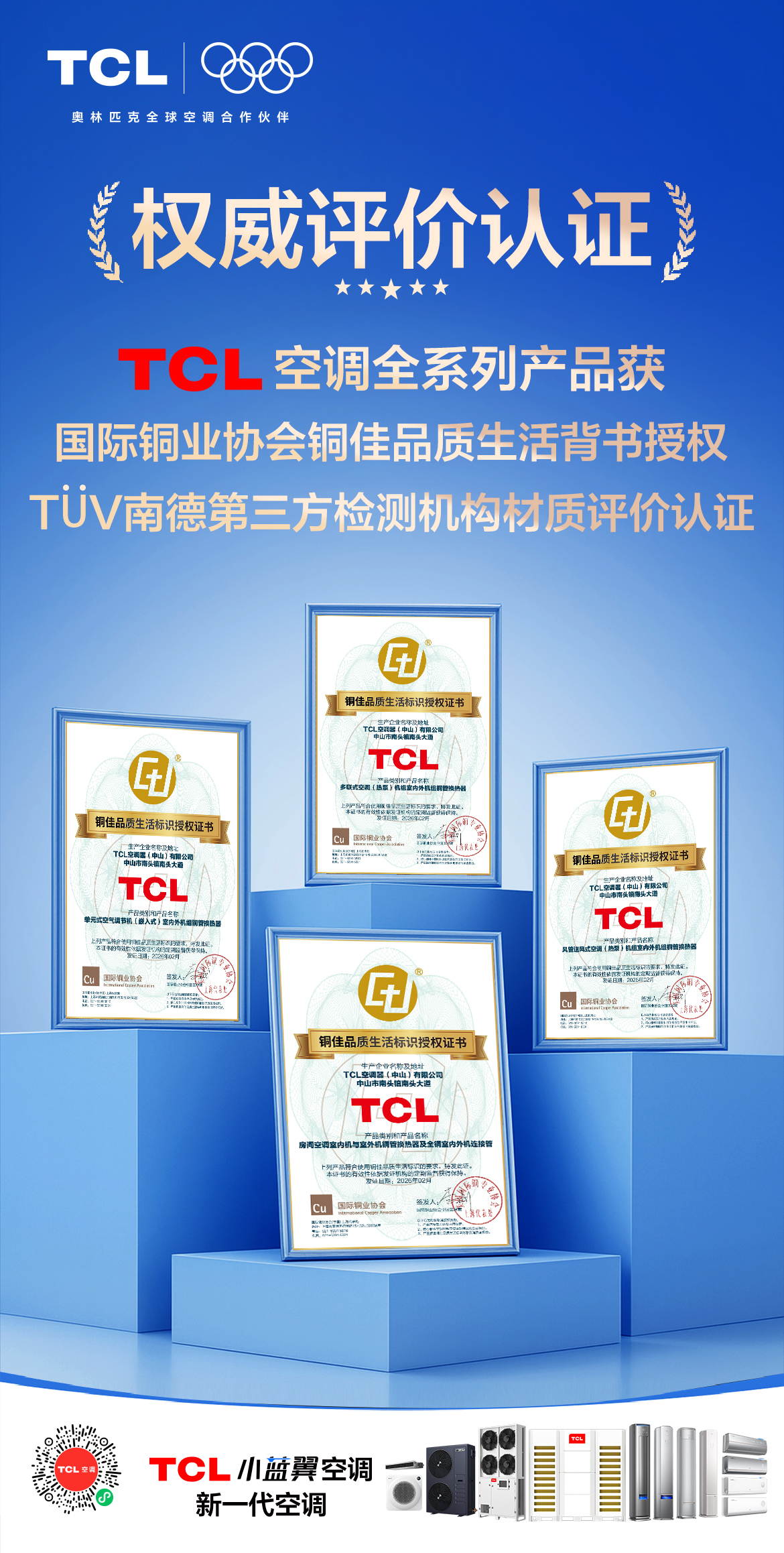 TCL空调全系列产品获国际铜业协会铜佳品质生活背书授权