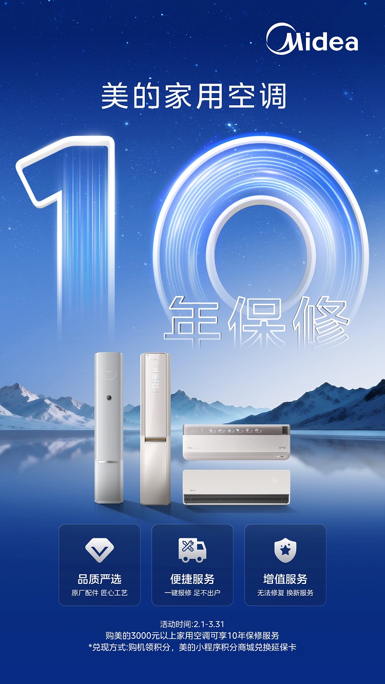美的领航者IV中央空调则主打高端智能,用于舒适黄金三角——国际领先的超低频稳态技术,美的专利连续喷气增焓技术,行业创新双出风内机,更重磅推出家用中央空调全系延保至10年的政策,搭配购3000元以上家用空调享10年保修的福利,彻底解决消费者“售后无忧”的顾虑,让高端家装更具保障。