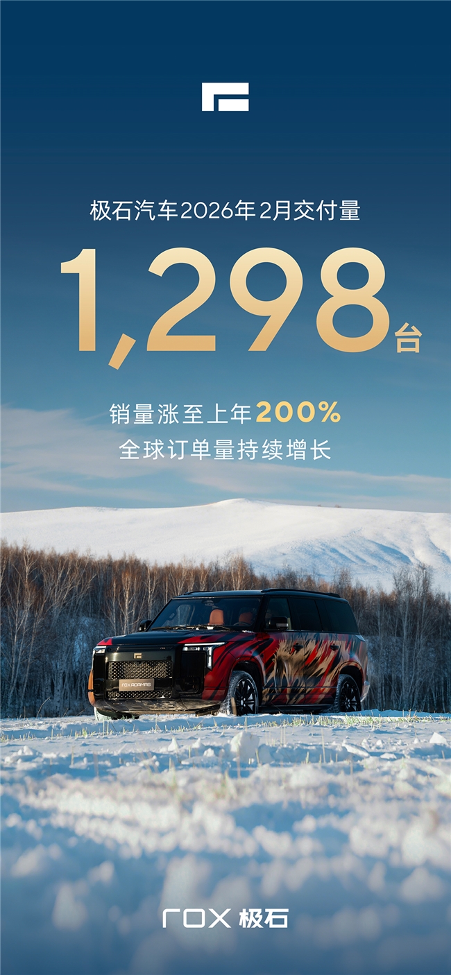 2026年2月,极石汽车交付量达1298台,销量涨至上年200%,实现同环比双增长,延续了新年以来的良好增长势头。这一成绩的背后,是极石汽车全价值链运营体系的日趋完善,更是产销规模稳步扩大后,规模效应在成本控制、品控管理、供应链协同等层面持续发挥作用的有力体现。作为一家专注于全地形、智能化、新能源技术的全球化豪华汽车公司,极石汽车隶属于洛轲智能,拥有完全独立的研发、生产、运营体系,与石头科技无任何形式的业务与资本关联,始终以务实的发展策略稳步推进全球化布局,在坚持高端产品定位的同时,通过体系化能力的提升,实现成本的合理控制,打造出兼具品质与商业可持续性的发展模式。