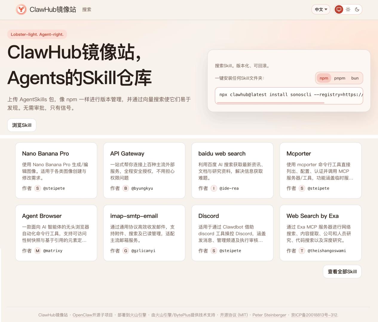 OpenClaw x 火山引擎:共建ClawHub中国镜像站,现正式启动运营