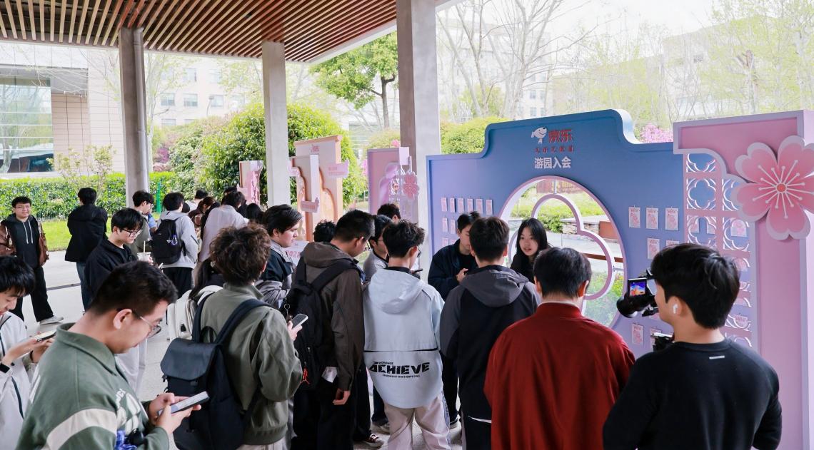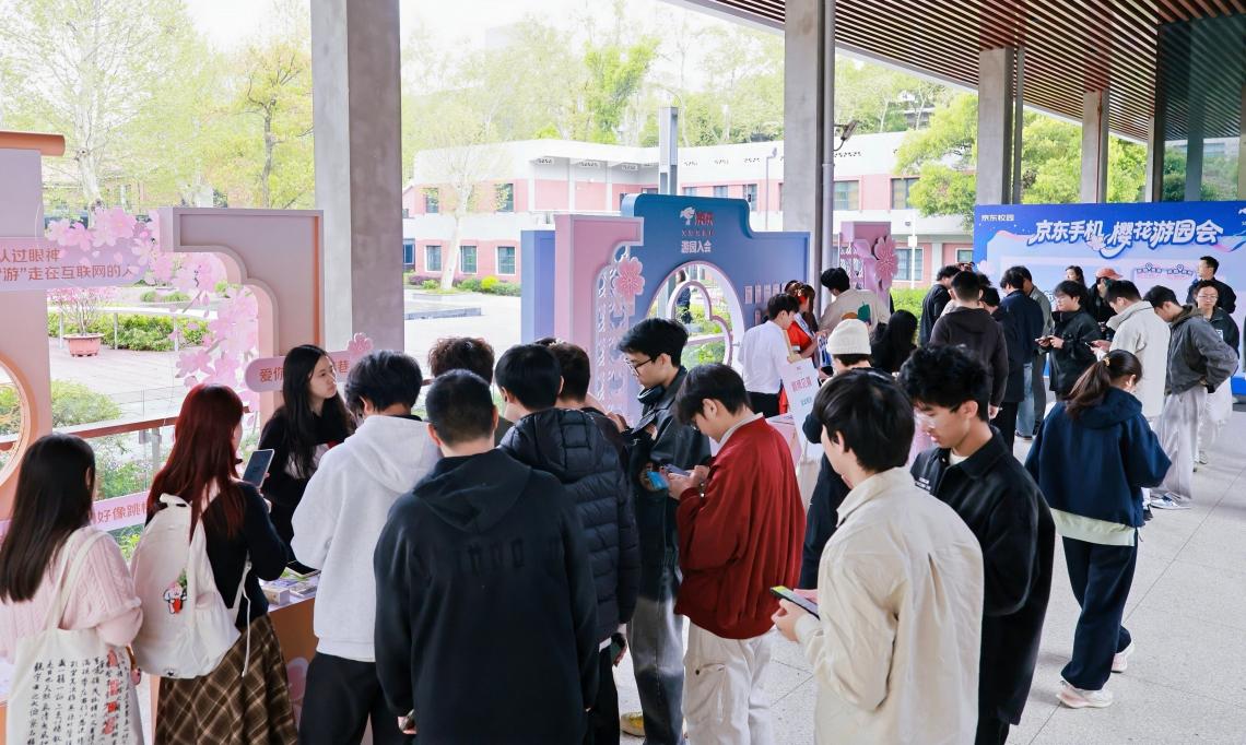 4月2日,京东携手中国联通、vivo在华中科技大学正式开启京东“手机新品千校行”首站活动,为学生们带来vivo、iQOO品牌多款新机,学生可通过“京补合约”购机模式享福利下单新品。同时,正值樱花盛开的时节,三方还以“樱花游园会”为主题打造了丰富多彩的活动,学生可在各大展台进行体验打卡,还有机会参与无畏契约水友赛。活动现场人头攒动,各展台前打卡集章、参与互动的学生络绎不绝。