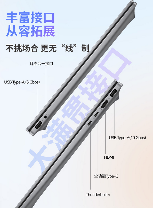 网络方面支持 Wi-Fi 7 与蓝牙 6.0 标准,提供更高带宽与更低延迟的无线连接体验,为云端协作、无线投屏及外设联动预留充足性能余量。
