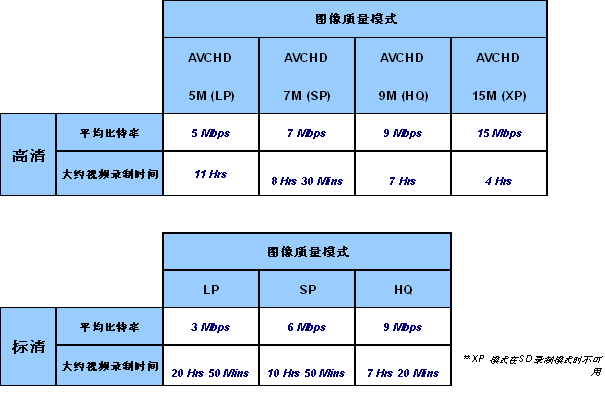 全新的AVCHD格式支持不同介质的(包括8cm DVD和硬盘上)录制和回放1080i信号的高清影像。