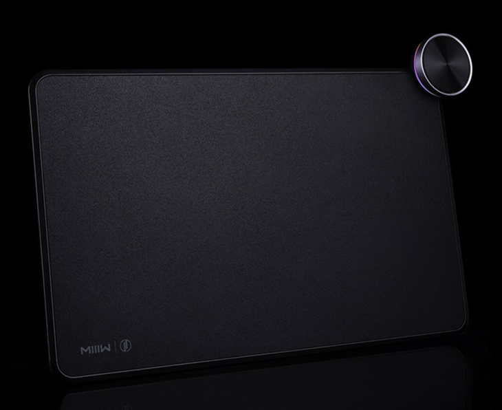 小米的米物智能鼠标垫不仅支持QI无线充电,同时也支持1680万色的RGB灯光,鼠标右上角的旋钮还可以用来调整设备音量。