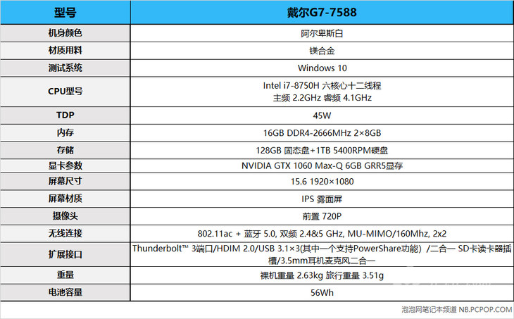 戴尔G7采用了英特尔八代i7-8750H标压处理器和NVIDIA GTX 1060 Max-Q独立显卡、16GB内存、258GB固态盘+1TB机械硬盘。这样的配置在游戏本中属于性能强劲的一款。前段时间戴尔G7系列还推出了配备了i9系列处理器的机型,如果用来玩游戏可能有点大材小用了。