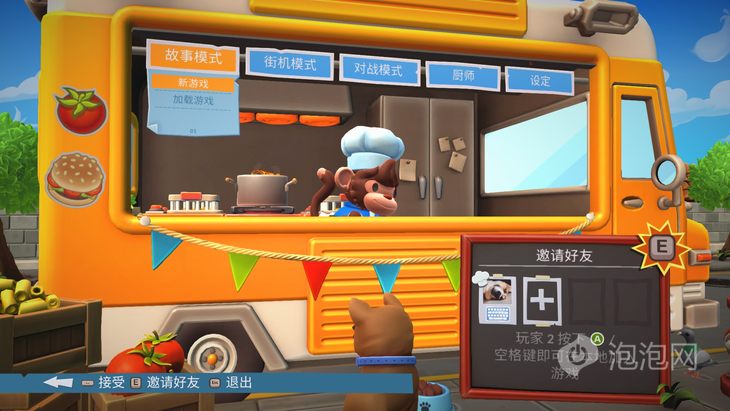 游戏支持手柄/键盘两种操作方式,在游戏开始页面就可以非常明显看出来,这一操作模式也是继承于前作,相信玩过第一部《胡闹厨房》的玩家对此一定是非常熟悉的。