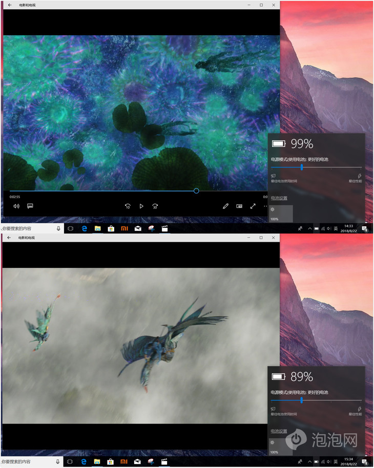 我们将笔记本亮度定为80%,音量20%,关闭蓝牙、GPS定位以及其他后台软件,连续播放一小时1080P视频,电池电量从99%下降至89%,共耗电10%,以此推算,小米笔记本Pro GTX版连续播放高清视频能够达到10小时,在日常使用中,10小时左右的续航时间没有问题,在同类产品中续航时间是比较长的了,可以满足用户在无法充电的移动场景中长时间使用。