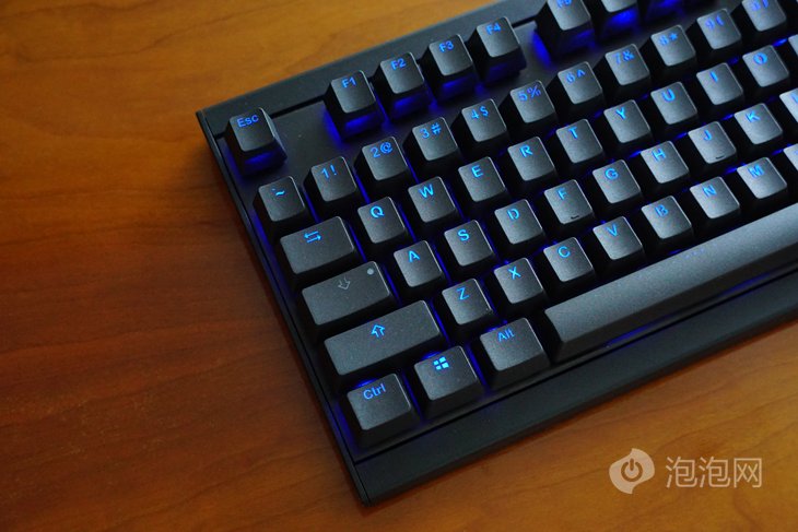 轴体方面我们拿到的是使用德国原厂Cherry红轴的版本,除此之外,P系列均提供黑红茶青四种常见轴体供消费者选择。均配备蓝色的LED背光灯珠。