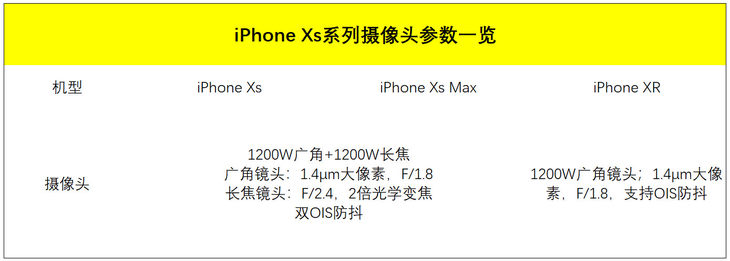 iPhone XR则采用了规格与iPhone XS系列相同的广角镜头,拥有1200万像素,F/1.8光圈,并且支持OIS防抖。