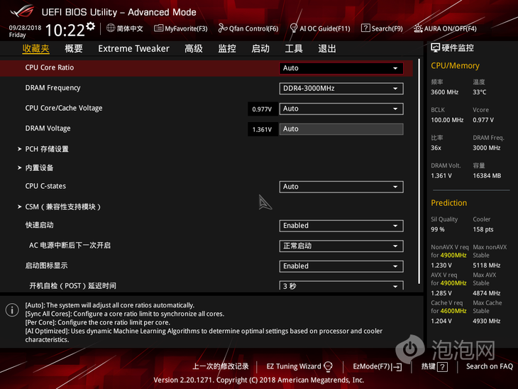 该技术在此次的华硕全系Z390主板界面均有体现,用户可在BIOS界面右下方根据用户当前硬件平台的散热系统、供电系统以及CPU体质自动配置合适的超频配置,方便超频玩家参考。为避免因超频而导致硬件损坏,通常情况下设计师在预设方案的过程中会适当保守,能够最大限度避免因超频导致的平台故障。
