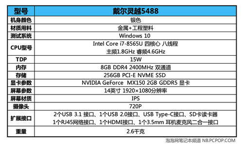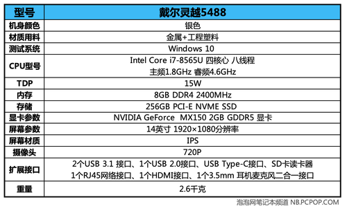 戴尔灵越5488配备有增强版第八代酷睿i7-8565U处理器、满血版MX150独立显卡、8GB DDR4 2400MHz内存、256GB固态硬盘,在轻薄本产品中有着强大的性能,下面我们对这款产品进行性能测试。