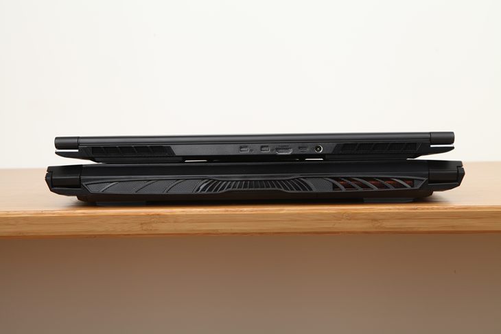 前文我们说到,有赖于MAX-Q技术带来的功耗发热方面的红利,MAX-Q游戏本可以大幅度缩减散热规模和尺寸,从而使游戏本的尺寸和厚度均有着显著的降低,同时重量也得到减轻。那么MAX-Q游戏本与传统游戏本之间的体型差距究竟有多大呢?我们可以从此次参测的机械革命Z2 Air和神舟Z7两款笔记本的外观对比来直观地感受一下。