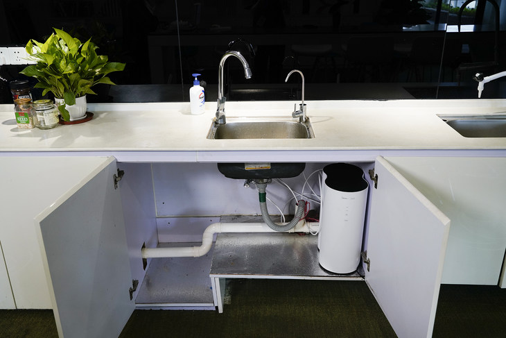 为了更好地适应厨房的安装环境,目前大部分净水机设备都会比较小巧,同时在安装方面会分为厨上式和厨下式,两种方式各有优势。我们这款天猫精灵定制款净水机采用厨下式设计,安装后不会影响厨房整体的美观,也不占用厨房的空间,能够适应大部分家庭用户的厨房环境。