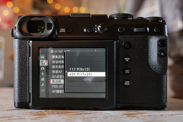 富士GFX 50R机背按键布局,具备对焦点选择拨杆