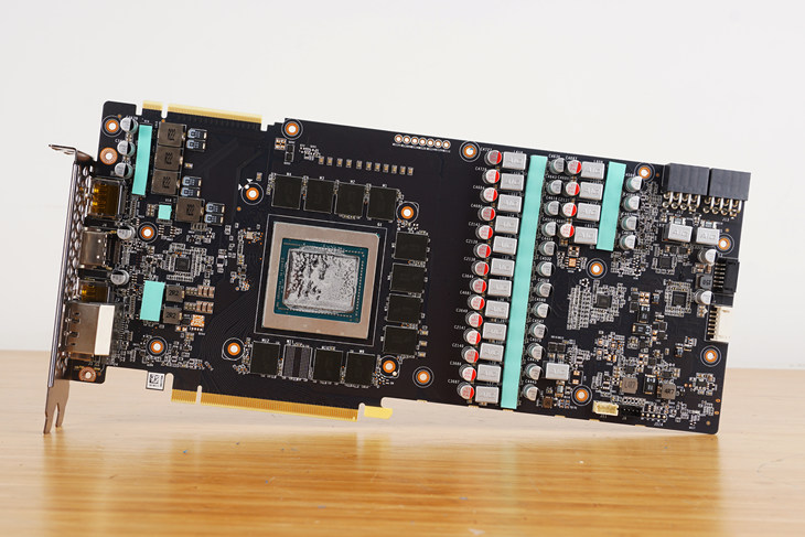 PCB板一直都是一款显卡的核心所在,透过索泰 RTX 2080Ti PGF OC版的GPU背板布局 不难看出这款RTX 20系显卡的用料之豪华,PCB板整体焊点精细,内部布局整洁。