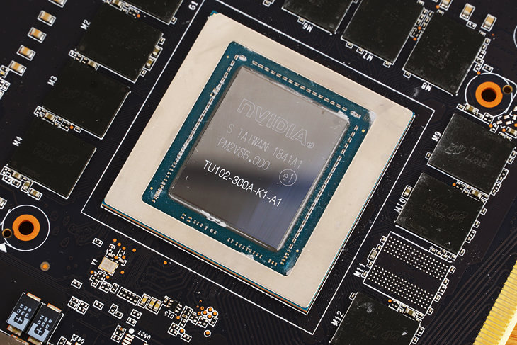 GPU核心代号TU-102-300A-K1-A1,来自台积电12nm制造,拥有4352个CUDA流处理器。基础频率1350MHz,Boost频率1750MHz,比公版高115MHz。