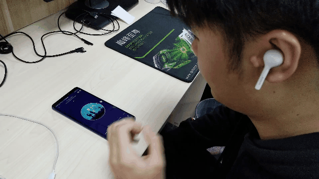 蓝牙连接很简单,耳机放在充电盒中,打开充电盒,长按背部的功能键2秒,充电盒蓝灯开始闪烁时,就可以与手机进行配对了。在配对成功后,我带上耳机,在我带上的一瞬间耳机会有佩戴成功的提示音。我按照说明书写的进行手势操作,双击触控右侧耳机可以播放和暂停音乐。当拿下一只耳机后,音乐会自动暂停。