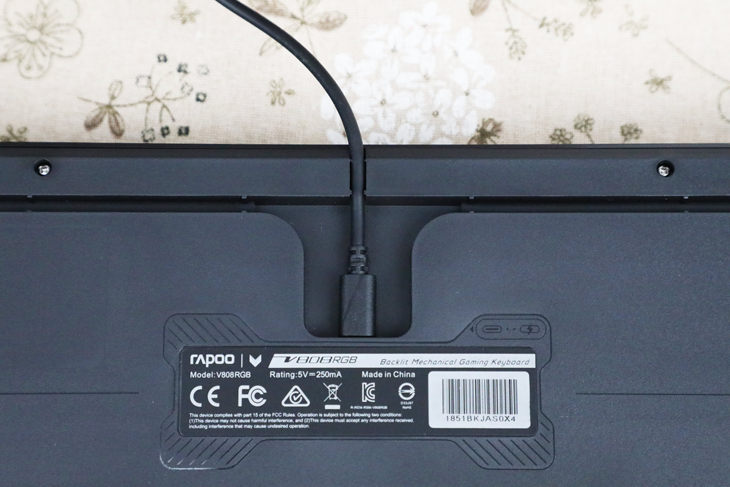雷柏V808 RGB键盘本身采用可拆卸的连接方式,用户可通过附赠的数据线连接电脑。