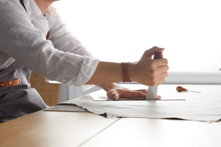 为确保真皮能够保留最本色的韵味,ARTONE的真皮原料只使用意大利传承百年的古法植鞣技术进行处理,确保真皮的色感犹如冲泡咖啡非常好的的83°C温度的完美比例。而为了让车线能够与真皮无缝融合,在进行车线前,匠人们会先在真皮表面进行凹痕烙印处理,同时由两位熟练的车线匠人进行纯手工的打孔车线,确保每个针脚都能带来跳动的生命力之美。最后,匠师会对每一张真皮进行手工铲皮处理,通过数道剖层工艺,最终应用在ARTONE上的真皮最薄处被打磨至0.45mm,仅相当于四张A4纸相叠的厚度。