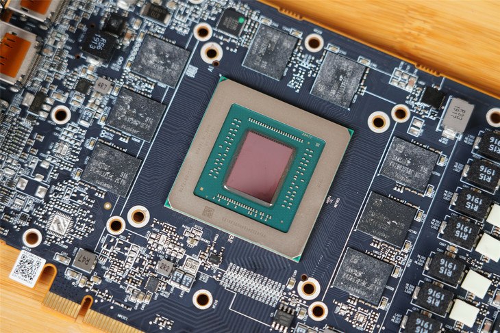 围绕着NAVI核心周围的是八颗1GB的GDDR6显存,共8GB容量。等效频率14000MHz。