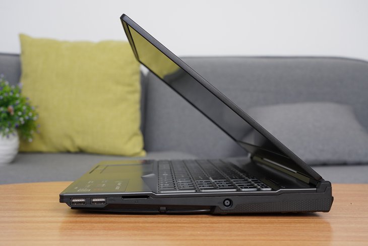 丰富的接口是微星游戏本的一大特色,Alpha15的机身左侧就密集布置了包括RJ45网线接口、HDMI、DP1.4、USB3.0、USB Type-C、3.5mm音频等多达6种不同的接口。