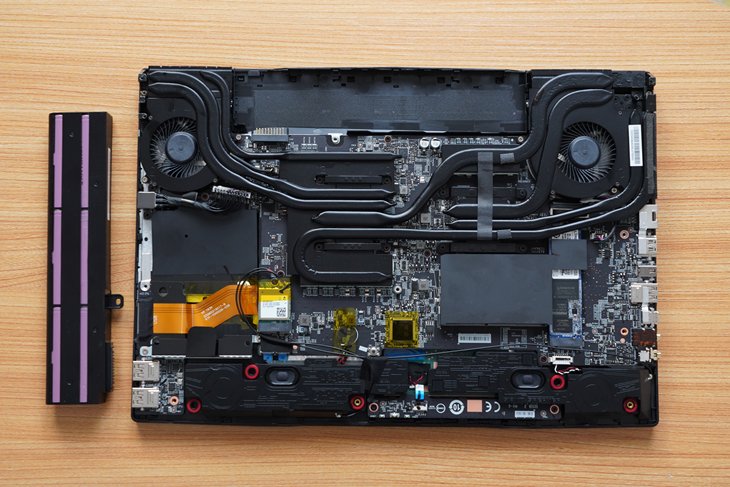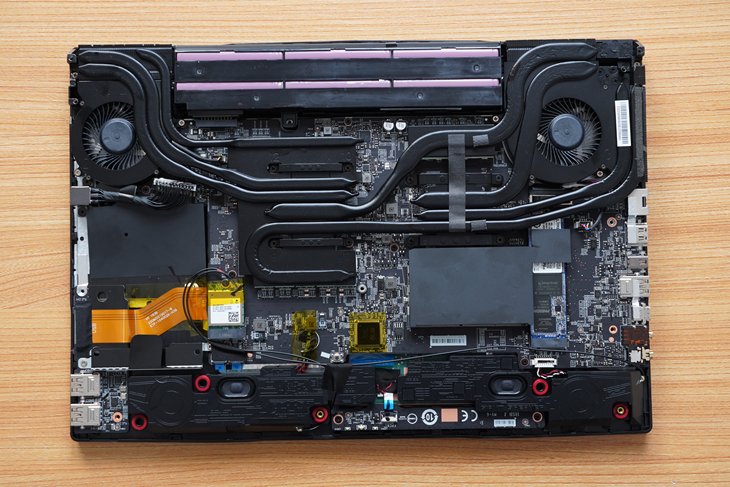 SSD来自金士顿,使用群联E8主控,为NVME协议产品。不过比较尴尬的是更换SSD需要先拆下热管。