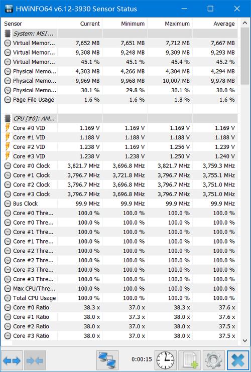 在上述两个测试项目中,处理器四枚核心的频率在3.7-3.8GHz左右,性能释放良好。