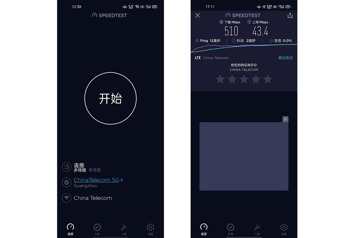 Reno3 Pro在5G网络下的下载速度可以达到510Mbps(套餐网速限制在500Mbps),上传速度为43.4Mbps。网速相比4G网络已经有非常大的提升,在线看视频、下载文件等都能获得不错的体验。