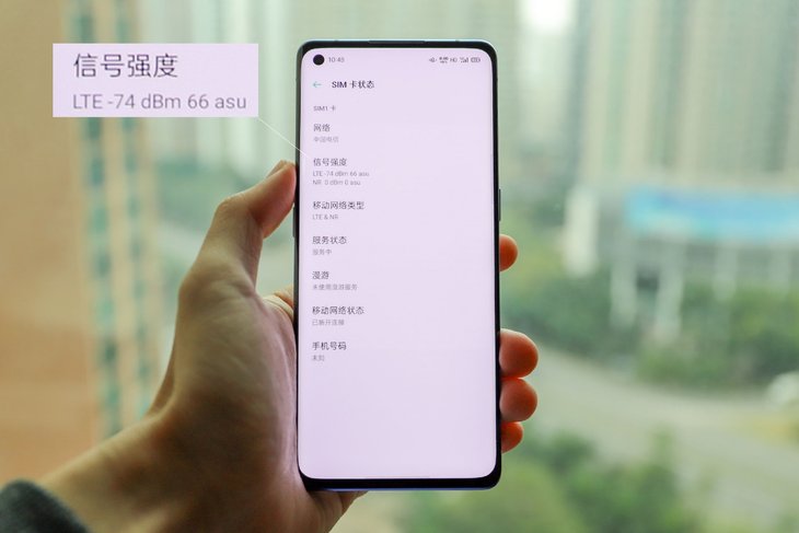 信号强度方面,我们也进行了实际测试。在日常使用比较常见的竖向握持状态下,状态栏显示信号满格,信号强度为-74dBm。