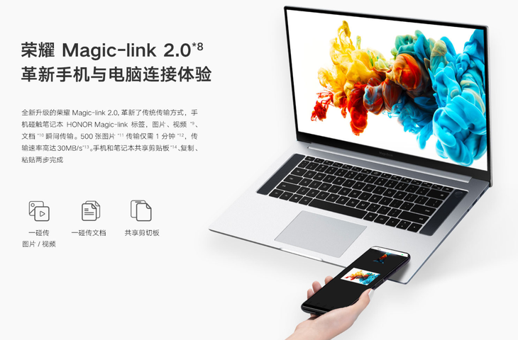 荣耀MagicBook Pro锐龙版加入多屏协同功能,能够轻松实现手机与PC端的连接交互,可以在电脑上直接控制手机,实现在电脑端刷朋友圈、抖音等操作。另外手机与电脑之间的数据共享也变得更加简单,手机和PC端文件传输直接通过拖拽完成,带来更高效的操作体验。