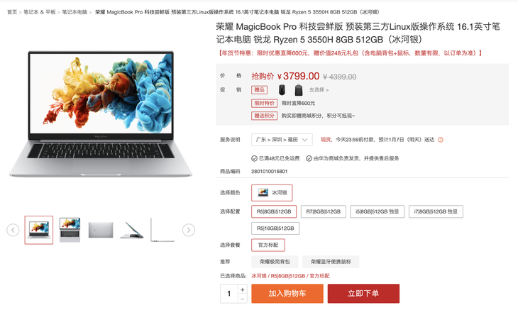 此外,除了上面提到的搭载Windows系统的荣耀MagicBook Pro锐龙版,还推出了荣耀MagicBook Pro科技尝鲜版。这个预装第三方Linux版操作系统的版本,进一步降低了价格,拥有更高的性价比。目前荣耀MagicBook Pro锐龙版以及荣耀MagicBook Pro科技尝鲜版正在各大平台热销中,最低只需3799元,感兴趣的朋友可以前往各大平台选购。