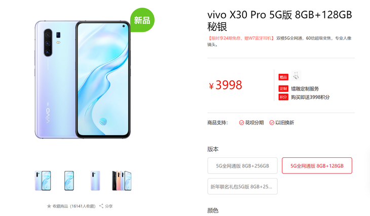 价格方面,vivo X30 Pro 8GB+128GB版售价3998元,8GB+256GB版本售价4298元。目前在vivo官方商城购买还能获赠W7蓝牙耳机、镭雕定制服务等,想要购买的朋友可以点击下方链接选购。