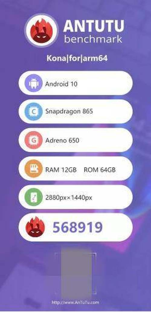 安兔兔跑分数据库中出现的骁龙865得分超过56万,较上代骁龙855综合性能提升约20%,经过OPPO后期优化后预计可达60万分,代表安卓阵营中的优异水平。