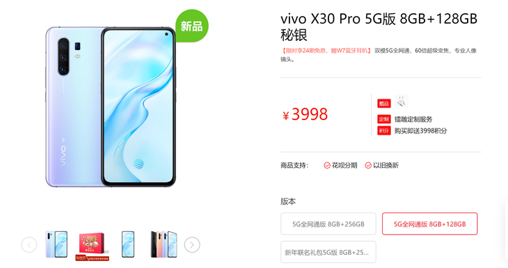 vivo X30 Pro 8GB+128GB售价3998元,8GB+256GB版本售价4298元。现在前往vivo官方商城购买还有礼品赠送,想要购买的朋友可得抓紧时间了,可点击下方链接直达。