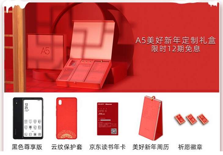 在这新春佳节即将到来之际,海信阅读手机A5还推出了新年定制礼盒版,采用了喜庆红的精美包装,售价仅1499元,里面除了拥有一部海信阅读手机A5黑色尊享版之外,还附带云纹保护套、京东读书年卡、美好新年周历以及祈愿徽章等精美礼品,过年送给亲朋好友倍儿有面儿。