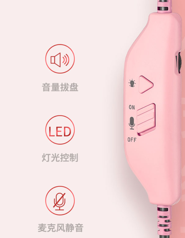 通过多功能一体式线控可以实现音量调节、麦克风静音、灯光控制功能,简单便捷。