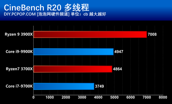 通过我们泡泡网之前的评测数据来看,AMD锐龙9 3900X的生产力性能远胜英特尔酷睿i9-9900K。