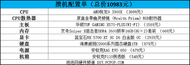 感受12核的强大威力!万元级AMD锐龙9 3900X全能主机配置单推荐