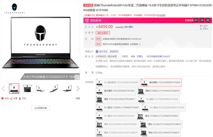 雷神911Air星战二代旗舰版>>6459元>>购买链接