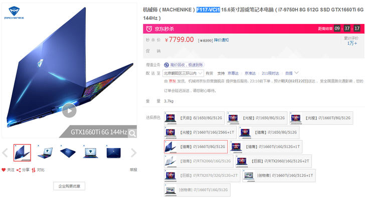 机械师F117-VCi1游戏本>>7799元>>购买链接