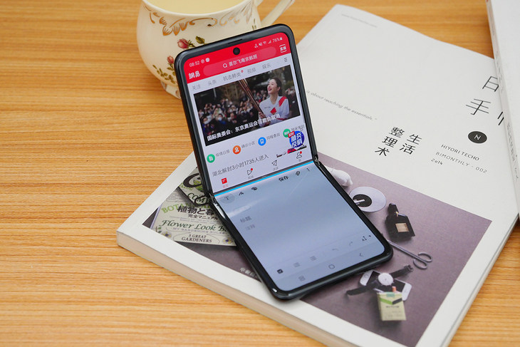 当三星Galaxy Z Flip展开之后,手机的屏幕尺寸为6.7英寸,屏幕比例为21.9:9,机身显得非常修长,所以在使用的时候,我们单手能够触及的区域只有屏幕的一半左右。不过这样的屏幕比例,在看视频以及浏览页面的时候,效果还是挺不错的。