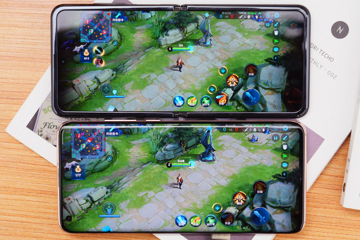 使用三星Galaxy Z Flip玩王者荣耀,画面范围要比一般的手机更大。