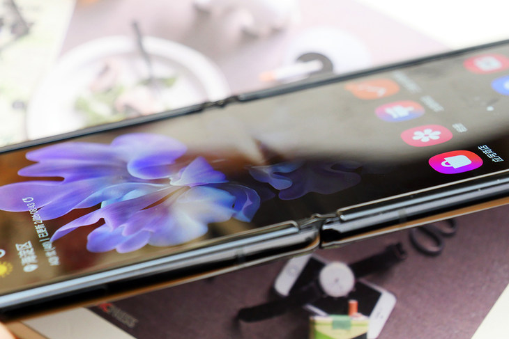 与其他的折叠屏不同,三星Galaxy Z Flip的内屏表面采用的是柔性玻璃,能够带来更好的触感,不过虽然是玻璃,但是在折叠处还是会有折痕,只是折痕的痕迹要比之前的Fold轻一些。