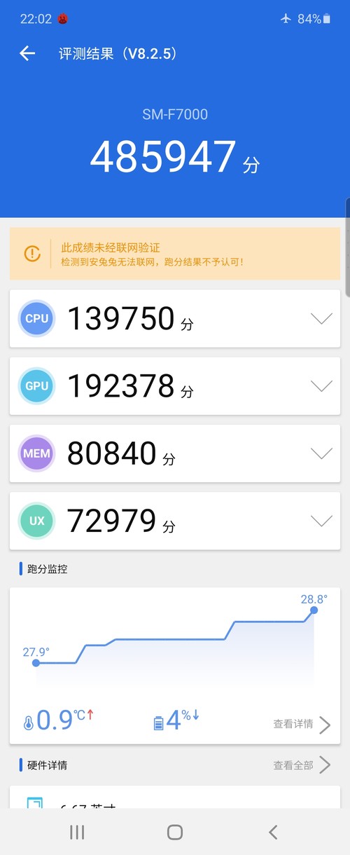 不过,虽然三星Galaxy Z Flip的配置并不重要,但是大家还是会想要了解一下手机的跑分情况,下面就通过安兔兔性能测试来看一下三星Galaxy Z Flip的性能如何。